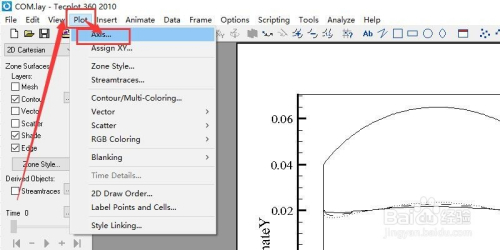 然后在点击界面中的菜单栏的Plot...。再点击Axis...,如图所示。