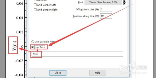 在Title栏界面下方,点击“Use Text”,输入你想要的Y轴题目,我输入的是Y(m)。如许我们就把Y轴和X轴的题目点窜好了。如图所示。