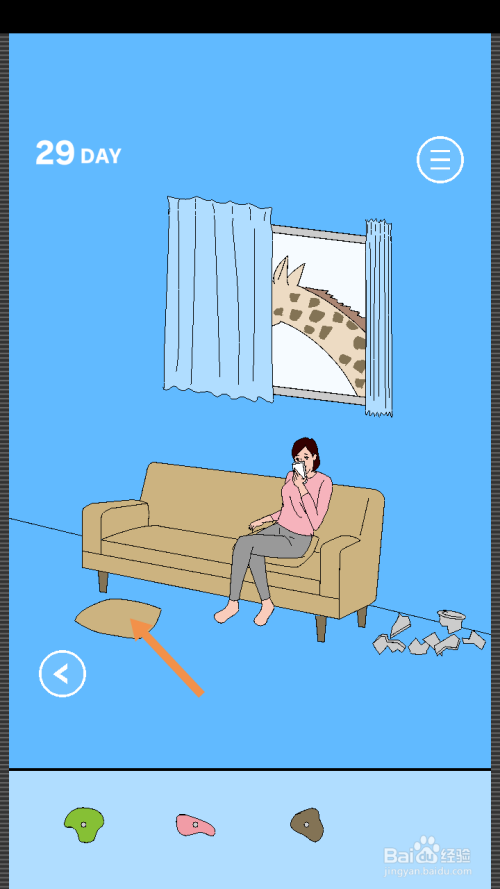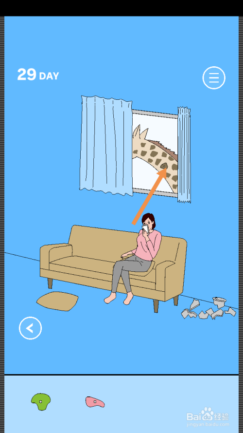 点击窗帘,然后点击长颈鹿身上的攀岩石。