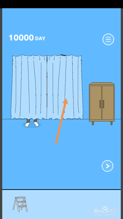 获得梯子后,点击标的目的左箭头,进入左边的房间。在左边房间里,点击窗帘。