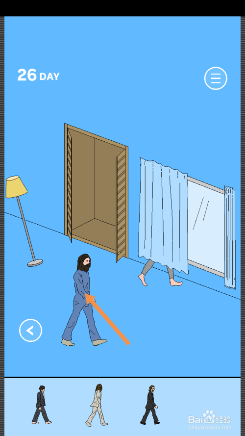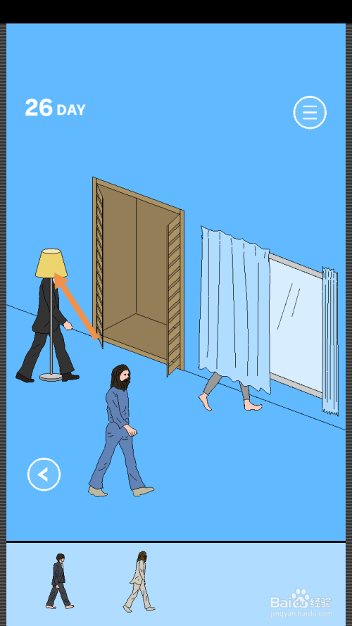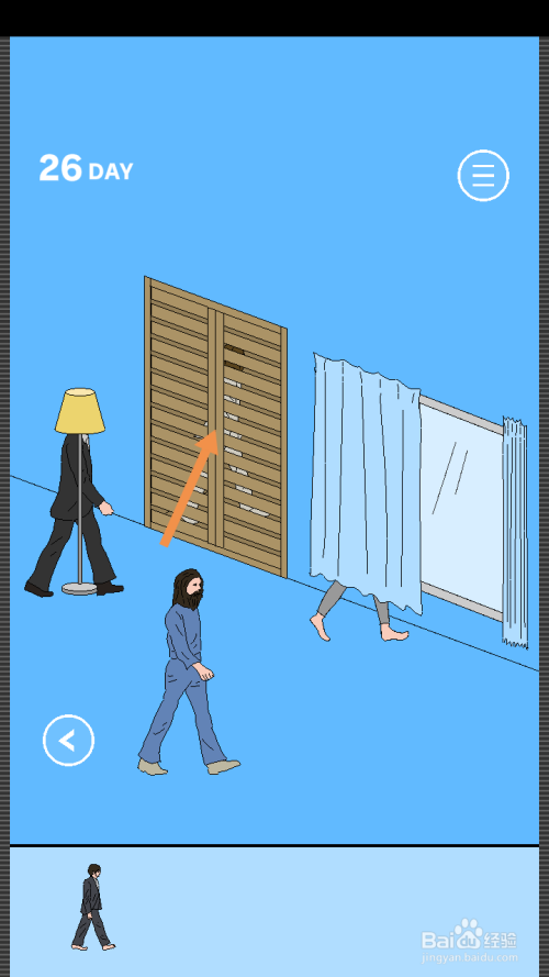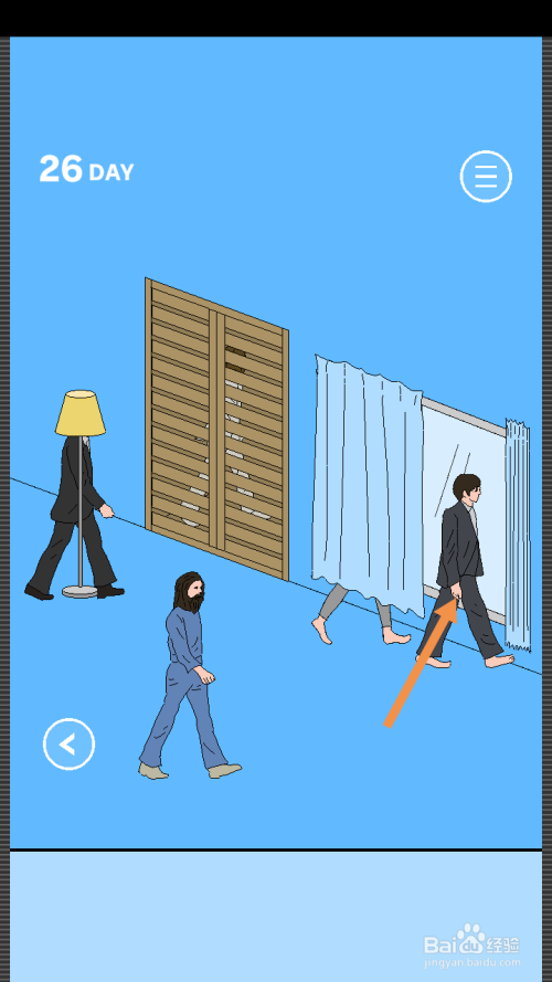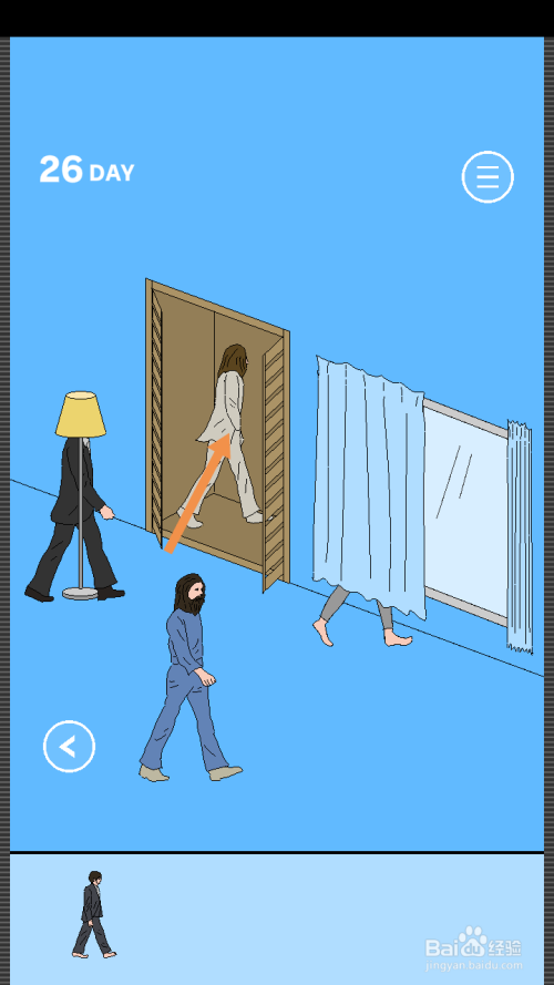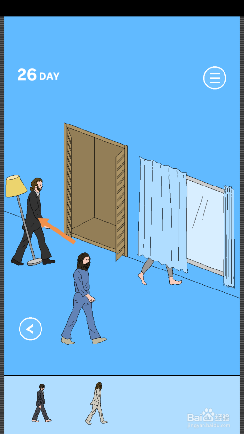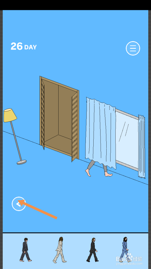 点击穿蓝色衣服的汉子,然后点击标的目的左箭头,进入左边的房间。