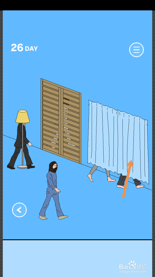 在右边房间里,点击窗帘,然后点击窗帘后的汉子。