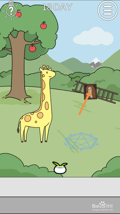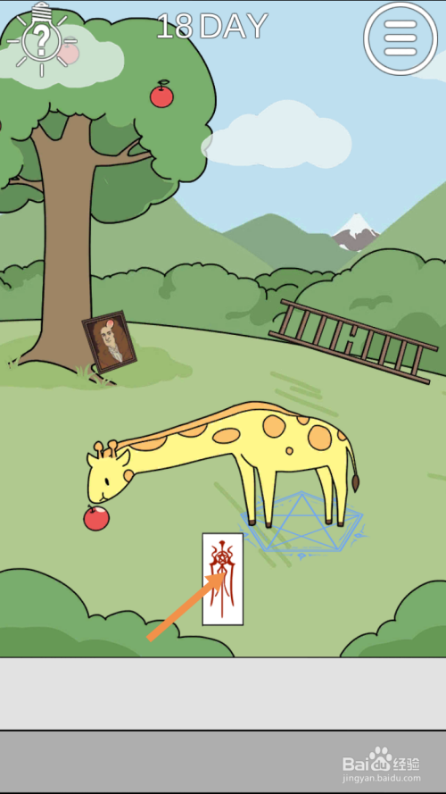 点击苹果,然后将苹果拖动到长颈鹿脚边。
