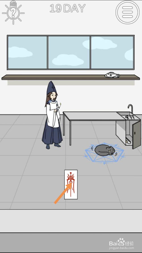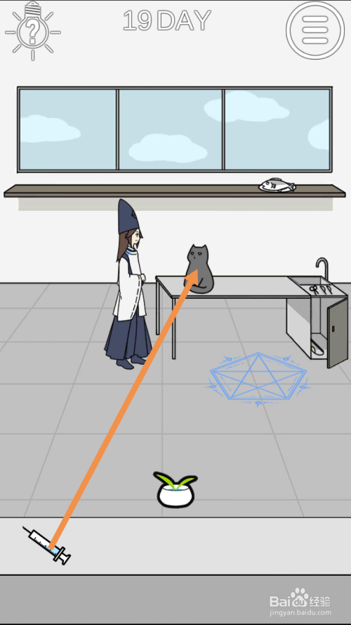 第19关点击打针器,然后将打针器拖动到猫身上。