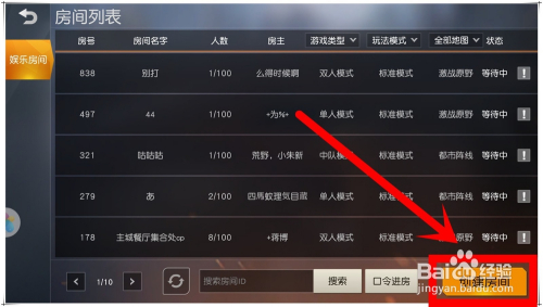 打开“房间列表”窗口,在此中可以看到所有已建立的房间,点击最下方的“建立房间”按钮。