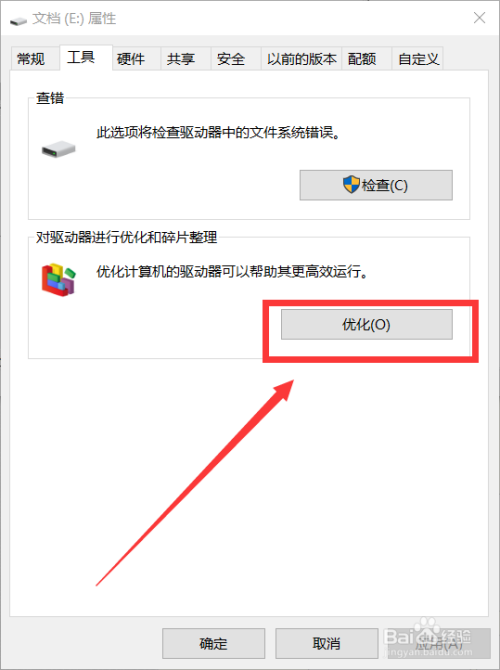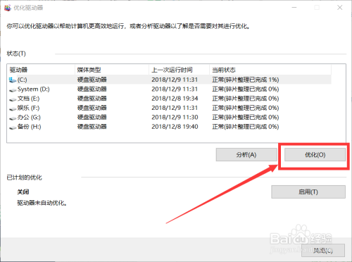 选中需要优化的磁盘分区(好比E盘)后,单击”优化即可