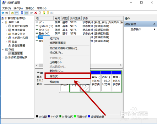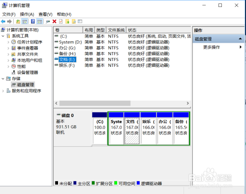 在计较机办理中选择“存储”——“磁盘办理”单击