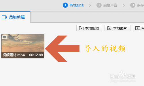 在视频添加界面,我们以导入当地视频为例,点击“当地视频”选项今后,即可添加了,图二就是导入当地视频之后的结果;