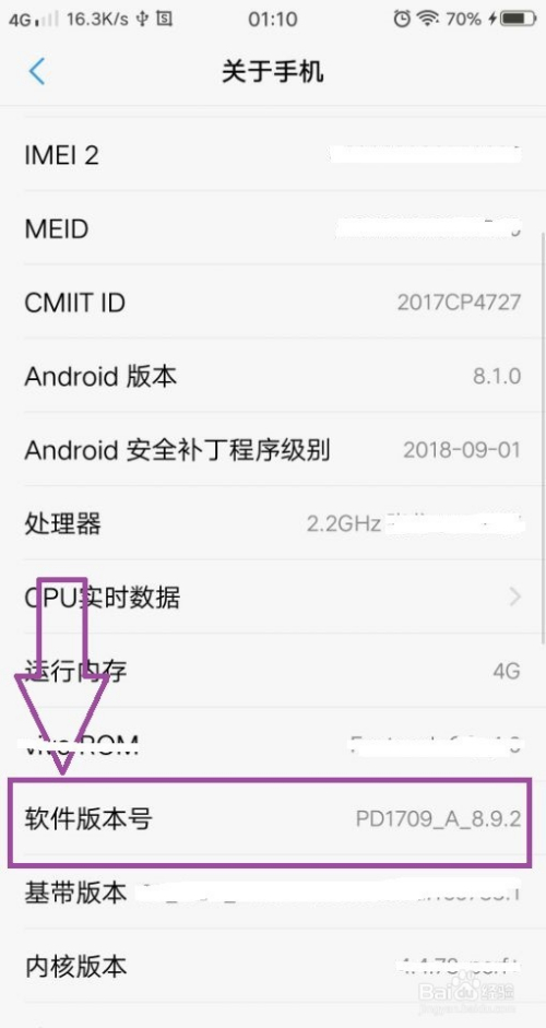 点击“关于手机”,进入到手机相关硬件信息资料页面,在页面上我们可以找到“软件版本号”,这时我们需要点击“软件版本号”10次,此时手机就会提醒“您正处于开辟者模式”。