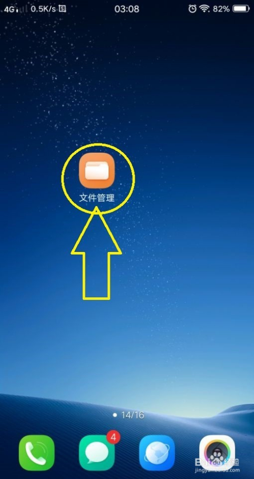 首先找到手机桌面的“文件办理”快捷体例。