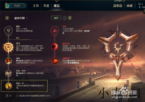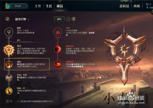 第一栏我们选择凯旋,在介入击杀的时辰可以或许恢复12%的已损生命值而且供给额外的20金币,如许子提高了强杀当作功率,也增添了经济效益。