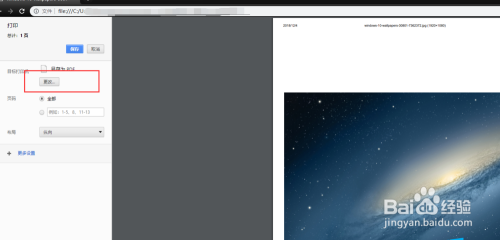 4.按下快捷键ctrl + p打开【打印】界面,如图所示,点击【更改】按钮