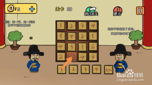 第20关按照下图中所示将数字拖动到框框里,最后将数字1拖动到框框里就过关了。