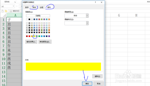 然后设置标识表记标帜格局,是字体颜色,仍是单位格填充色,教程以单位格填充色为例。