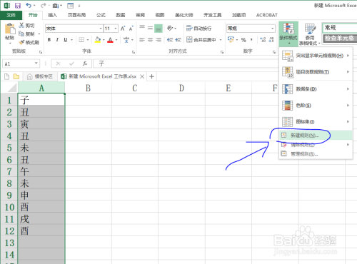单击菜单栏起头下面的前提格局,找到新建法则号令。