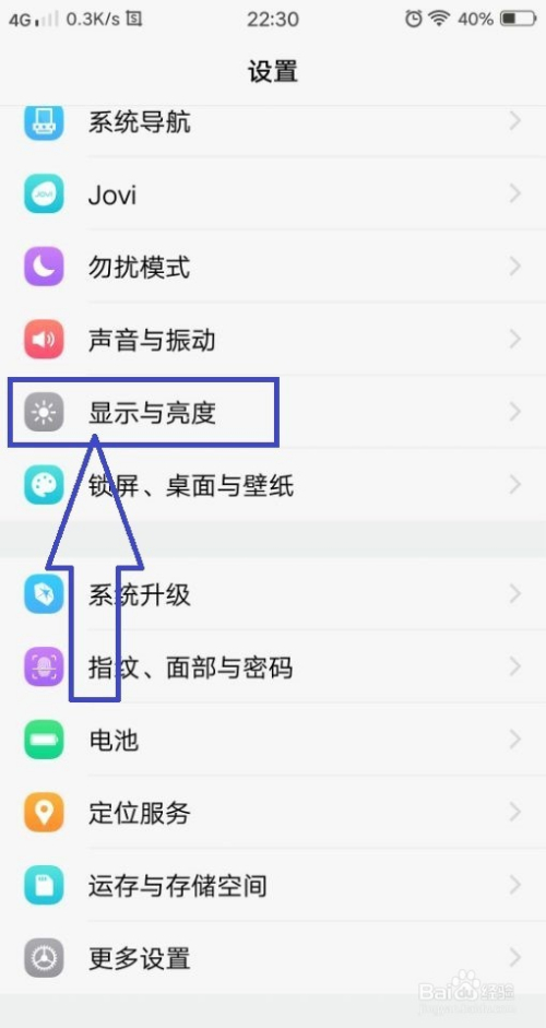 点击“设置”,进入到设置的页面,在页面上我们可以找到“显示与亮度”。