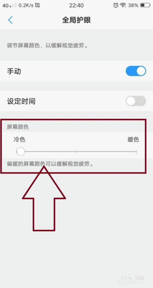 然后将全局护眼模式开启,将屏幕的颜色设置为冷色,