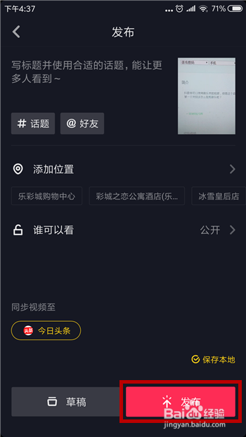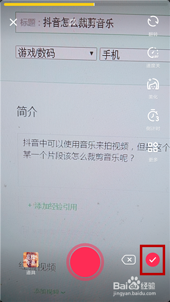 在抖音中录制一段视频,然后点击【√】完当作视频的录制。