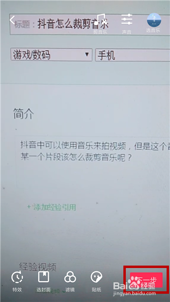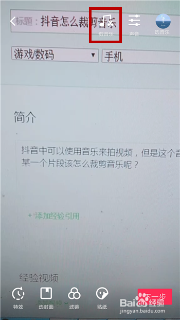 当作功添加音乐后会返回到编纂界面,这时辰点击右上角的【剪音乐】。
