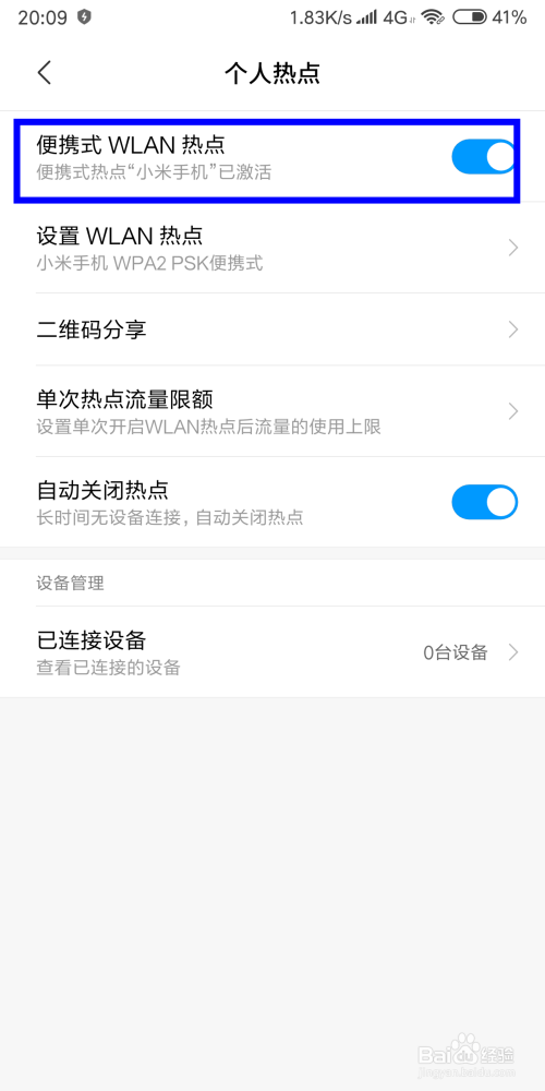 之后,退到上一层界面,看到“便携式WLAN热点”已经打开即可,若是没有打开需要手动点击一下这个选项后面圆圈即可,这时辰你便可以连上无线收集,畅游在海洋的宿世界里了。