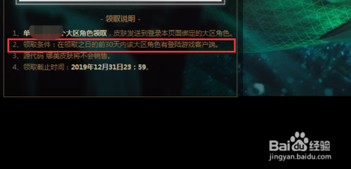 在领取该皮肤前30天内有过登岸游戏客户端的操作。