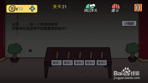 第21关点击五个卷宗不雅看,看完五个卷宗后就过关了。