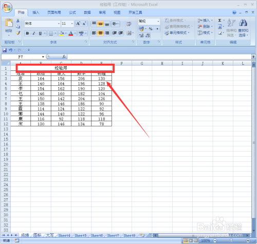 此刻我们可以对此中的肆意一个工作表进行点窜。好比我们对“成就”工作表进行插入行操作,输入“经验用”作为工作表表头