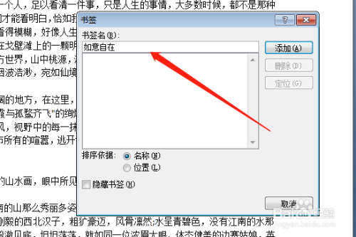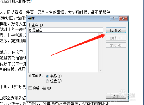 点击添加书签名;