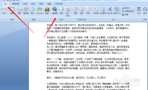 首先,我们将鼠标光标放置于需要插入标签的文字后面,点击“插入”——“书签”;