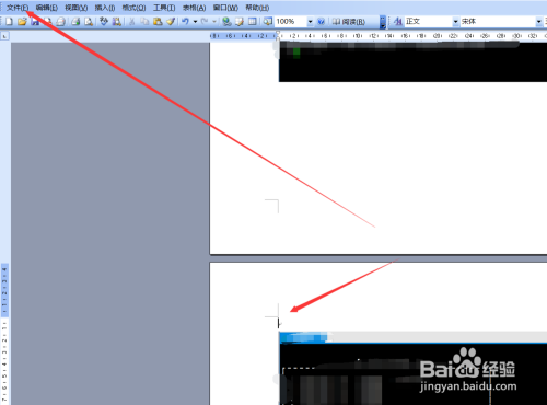 打开word文件后,找到要零丁横标的目的的页面,然后定位到他上一页末从头至尾,如下图所示。