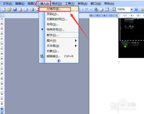 然后直接点击word导航栏上面的【插入】,然后在点击下拉菜单里的【分隔符】,如下图所示。