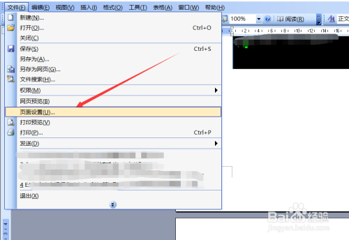 然后在点击文件下拉菜单里的【页面设置】,如下图所示。