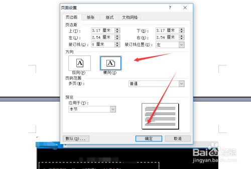 在打开的word页面设置对话框里直接点击【横标的目的】选项,然后点击【确定】,如下图所示。