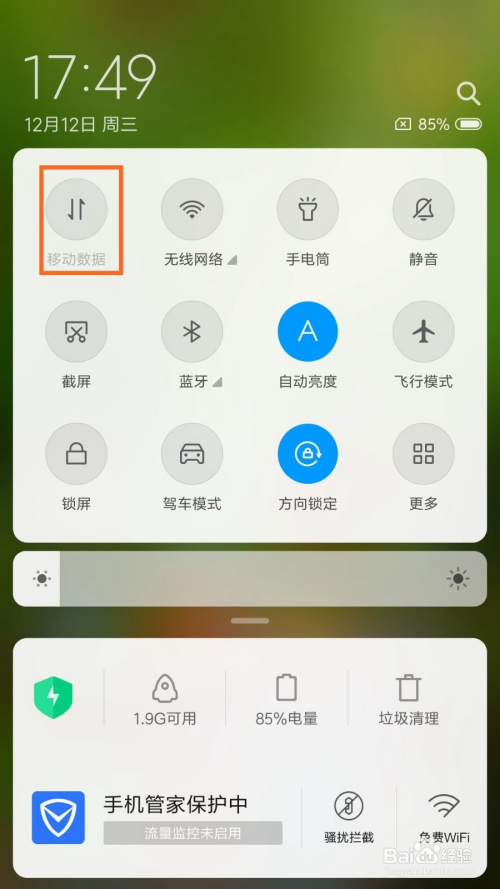 首先,在首页上方下拉菜单找到移动数据,将它打开。