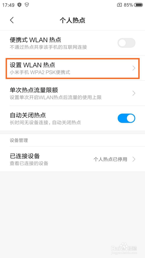 进入后,找到“设置WLAN热点”这个选项,点击一下。