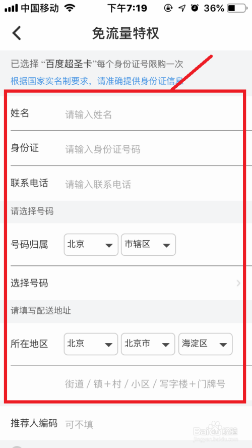 点击选择“卡片类型”——“免费试用”,弥补姓名、身份证号等根基信息,勾选“我已阅读并赞成和谈”,再点击“当即提交免费送货上门”,即可开通“免流量卡”。