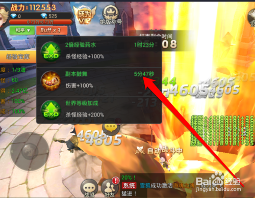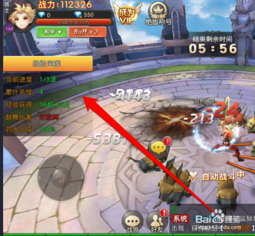 进入副本战斗今后,在副本的左边,显示当前的进度和获得经验。
