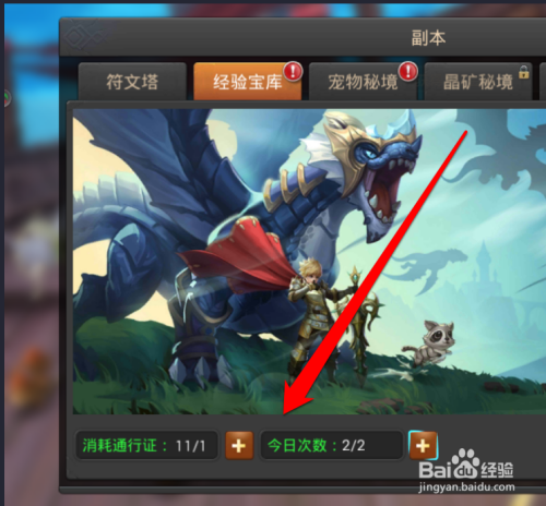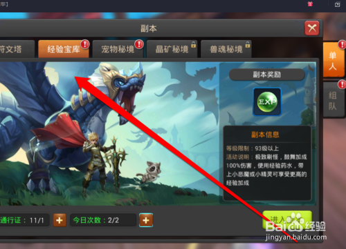 进入副本的界面,我们需要获得经验,那么就选择经验宝库。
