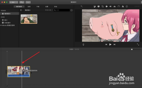 点击软件上的视频,拖到时候轴上,同时在时候轴上选择视频,两根手指分隔放年夜时候轴上的视频。