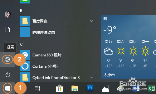 想要今后再也不弹出照片应用,我们首先需要点击电脑左上角的“起头”-“设置”;