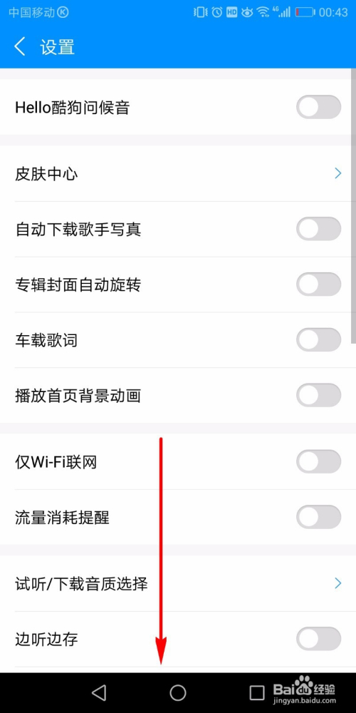 此时便进入到了酷狗音乐的设置页面了,在该页面中往下拉动页面。