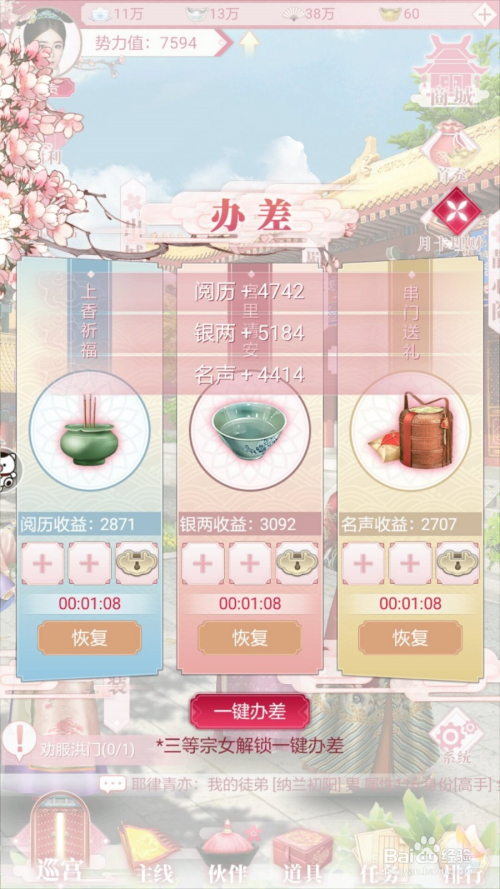 第一步:打开游戏本家儿界面,点击办差。