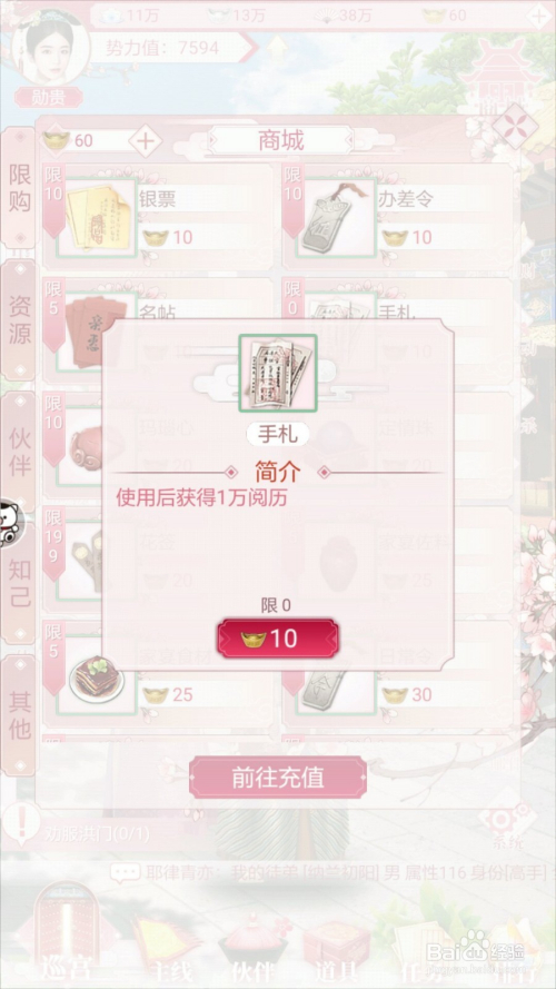 第六步:在游戏本家儿界面,右上角商城中经由过程采办手札获得阅历。
