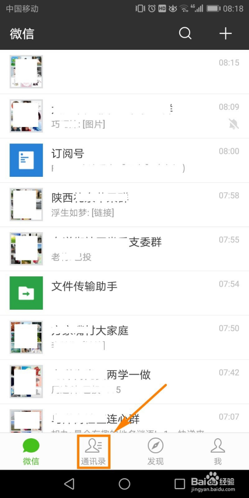 进入到微信本家儿页面,在本家儿页下方菜单中点击选择【通信录】,如图所示。