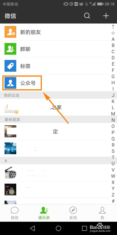 在通信录的列表中点击选择【公家号】选项。