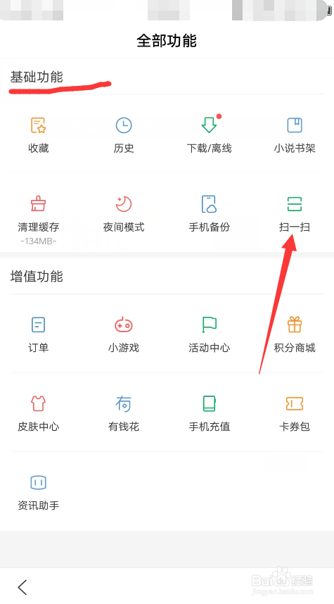 在根本功能中,找到扫一扫;