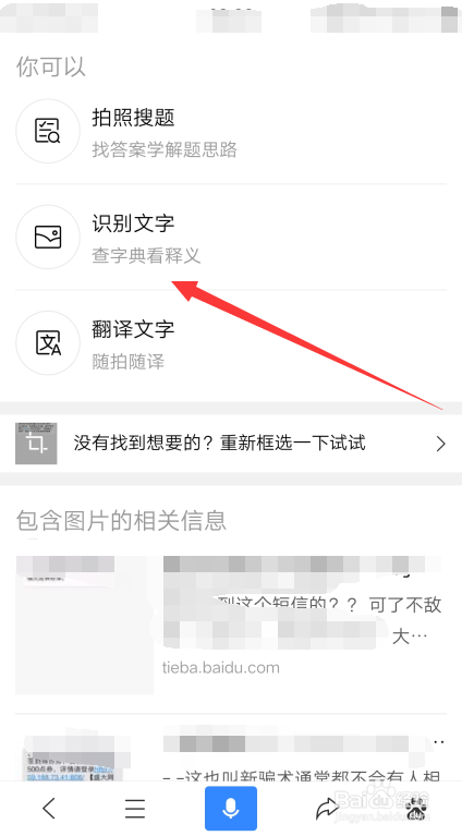 最后点击识别文字,当然也可以摄影搜题或翻译文字。