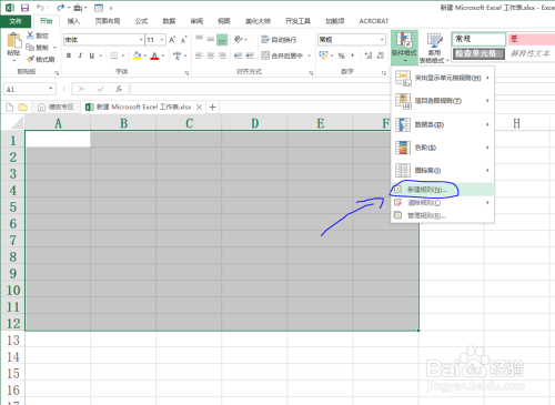 在菜单栏起头项下样式中找到前提格局号令,然后在前提样式下找到新建法则。