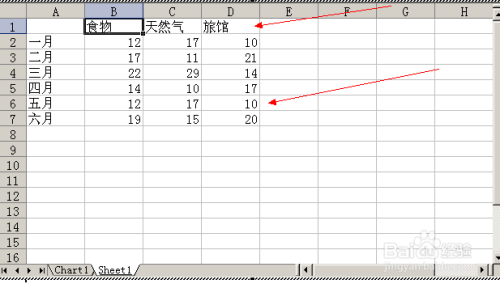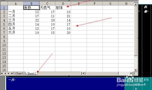 对原始收条点窜后,会看到图表中的数据也跟着表格里数据的改动而变更,如下图