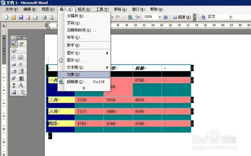 选定已经建造好的表格单击东西栏中的“插入”“对象”如下图